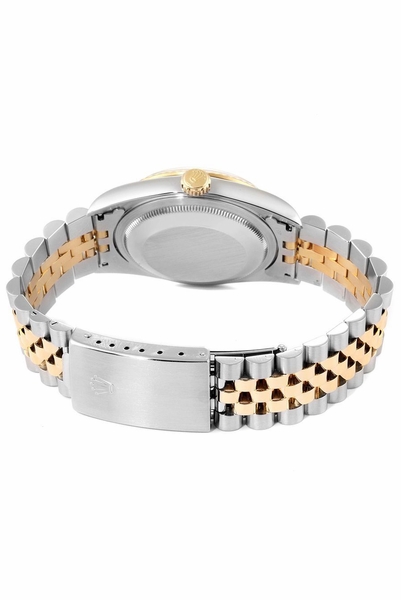 Kjo orë klasike Rolex Date just Jubilee ka një kornizë çeliku inox 36 mm me dy ngjyra dhe ar të verdhë, perfekte për të krijuar një deklaratë të përjetshme.