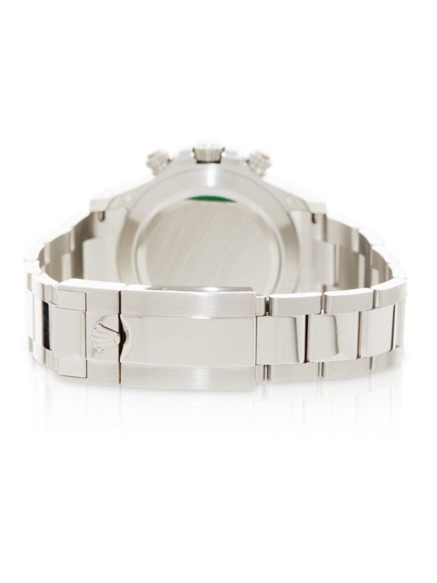 Kuti platini e bardhë me një byzylyk goce platini të bardhë. Kornizë qeramike ngjyrë kafe gështenje e fiksuar që tregon shenjat e takimetrit. Numërator blu akulli me akrepa të shndritshëm argjendi dhe shënues të orës me diamant. Shënues minutash rreth buzës së jashtme. Lloji i unazës: Analog. Akrepa ndriçues. Kronograf – tre nën-numëratorë që shfaqin: mekanizëm 60 sekondash, 30 minutash dhe 12 orësh, bazuar në Rolex 4030, që përmban 44 gurë të çmuar, që mprehin 28800 vph, dhe ka një rezervë energjie prej afërsisht 72 orësh. Kristal safiri rezistent ndaj gërvishtjeve. Kurorë e vidhosur. Pjesa e pasme e kutisë është e fortë. Formë e rrumbullakët e kutisë. Madhësia e kutisë: 40 mm. Kapëse Oysterlock. Matës rezistent ndaj ujit. Funksionet: kronograf, orë, minutë, sekondë, kronometër. Seria Cosmograph Daytona. Stil ore luksoze. Etiketa e orës: Prodhuar në Zvicër.